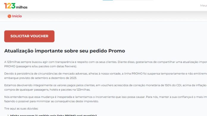 A empresa garantiu que serão devolvidos integralmente os valores pelos clientes, por meio de vouchers acrescidos de correção monetária de 150% do CDI para compras de “quaisquer passagens, hotéis e pacotes na 123 Milhas”. Leia aqui o comunicado na íntegra.