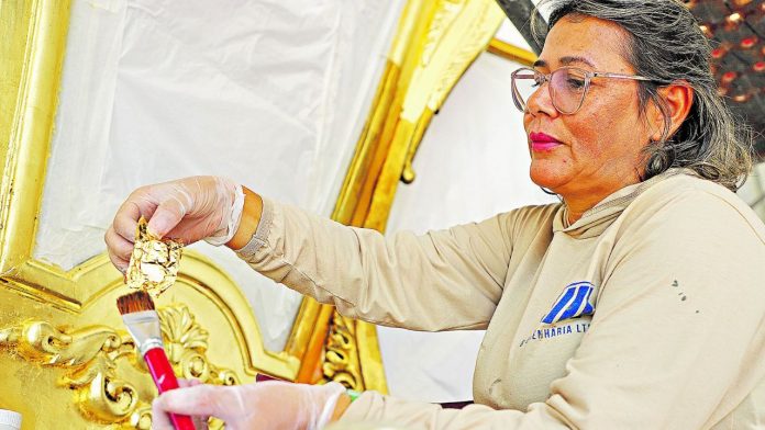 “No primeiro ano, pegamos o carro que leva a berlinda muito deteriorado e fizemos uma ampla manutenção, inclusive com pintura geral. Na berlinda, nesses dois últimos anos, foram feitos só reparos. Este ano, graças a Deus, conseguimos. A empresa fez o custo e está sem nenhum lucro nessa intervenção e a diretoria assumiu os custos desse trabalho. Depois de praticamente oito anos estamos renovando totalmente o original da berlinda, que é o folheamento em ouro”, informa.
