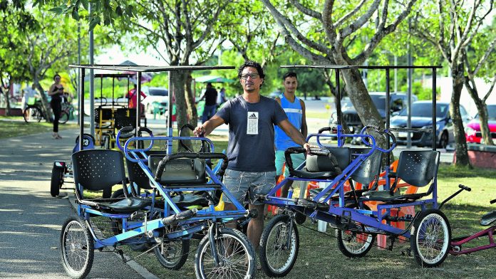 O autônomo Antônio Fernandes, 42, trabalha no Portal desde a inauguração, que ocorreu no ano de 2012. Esta é a única fonte de renda dele, que atua com o aluguel de bicicletas família, quadriciclos e triciclos. Ele conta que há alguns anos os trabalhadores da área se reuniram e formaram uma associação. Com isso, conseguiram formalizar o cadastro como permissionários.